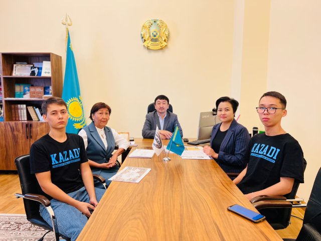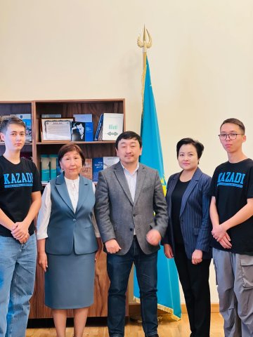 Фотосуретте ортасында – «Ғылым ордасы» ШЖҚ РМК бас директоры Мұқажанов У.О. сол жағында – ҚазАЖИ кітапханасының директоры Бейсенбаева Р.А. оң жағында – «Ғылым ордасы» кітапханасының директоры Жадыра Қаһарманқызы.