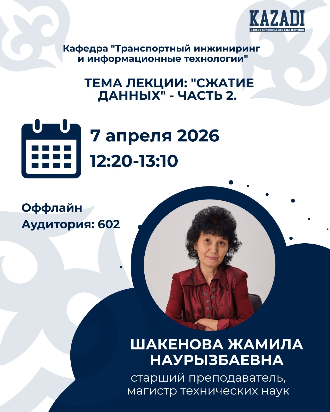 В рамках открытого занятия по дисциплине «Основы информационных систем» будет проведена лекция на тему «Сжатие данных (часть 2)».