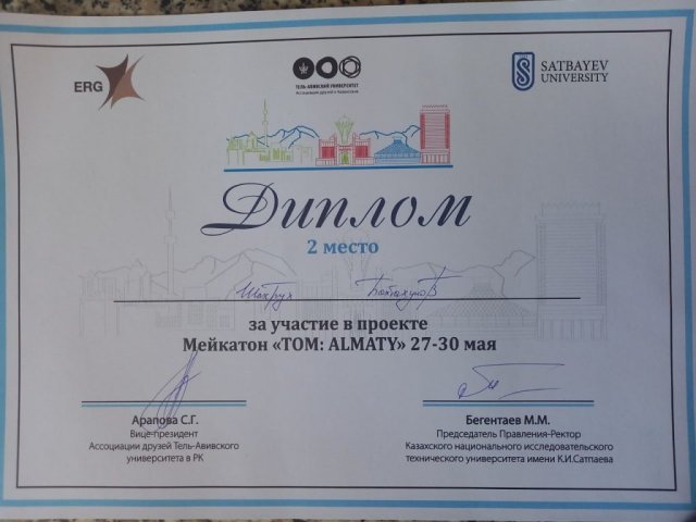 Команда разработчиков, в числе которых студент @kazadi_kz 2 курса ИС Бахтахунов Шахрух и преподаватель кафедры «ИК,ОД и ИС» Панюкова Дина, прошли отборочный тур с 14 апреля 2022 года и стали одной из 7 команд, участвовавших с 27 по 30 мая в 72 часовом марофоне социального проекта #Мейкатон #Алматы от @tomkazakhstan.