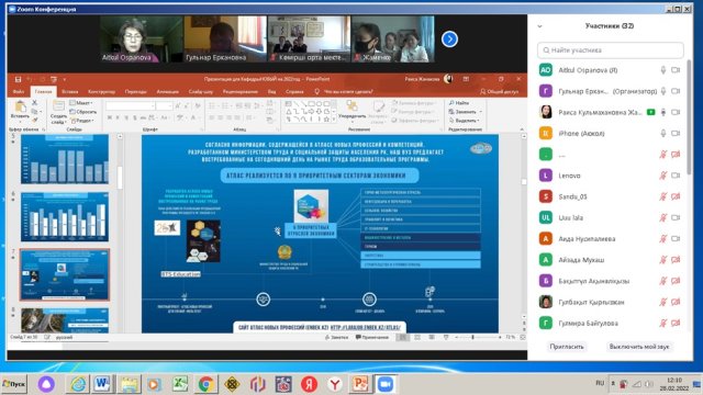 Также, в онлайн-встрече приняли участие преподаватели Оспанова А. А. из кафедры «ОД и ИС» и Жанакова Р. К. из кафедры «ТС и ПСМ и К»», Сабралиев Н. С. из кафедры «ТТТ и Т и ОПД и ЭТ», Нурпеисова Т. Б., заведующая кафедры «ОД и ИС» и Ответственный секретарь приемной комиссии Намазбаева А. Д., с кафедрой «Экономика» участвовала Карипова М.Р.