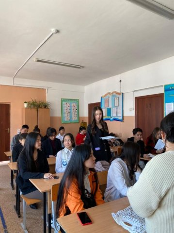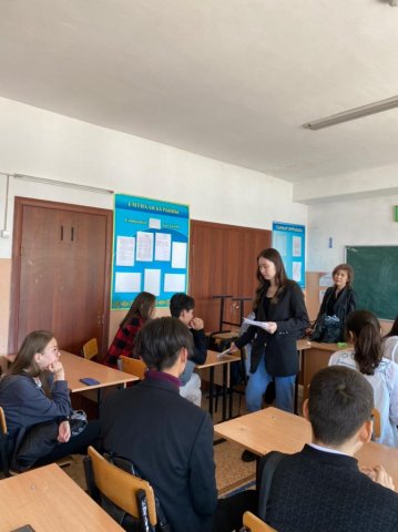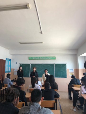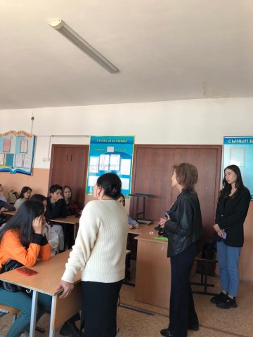 26 апреля 2022 года в школе им.Л.Н.Толстого, Алматинской области, Каскеленского района прошла встреча с выпускниками по профориентационной работе под руководством заместителя декана по воспитательной работе Казахского автомобильно — дорожного института им. Л. Б. Гончарова Баймагамбетовой Г. Е. и преподавателем кафедры «ОД и ИС» Оспановой А.А., студентки 1-курса Казиевой Лаурой и Тулепбаевой Самал.