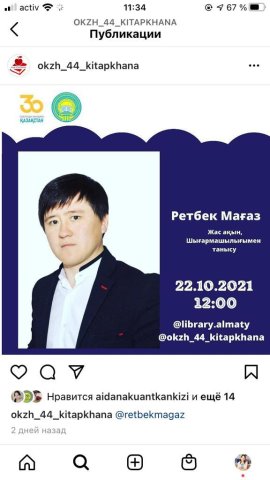 Сегодня, 22 октября 2021 года, у студентов 1,2,3 курсов Казахского автомобильно-дорожного института имени Гончарова Л.Б. состоялась встреча с молодым поэтом Ретбек Мағаз.