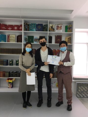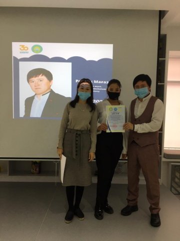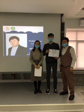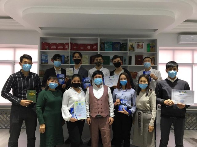 Также, поэт Ретбек Мағаз поздравил и вручил Грамоты и Дипломы нашим студентам, которые стали победителями в конкурсах «Алматы, сен бізді ақын еттің» и «Ана тілің-арың бұл».