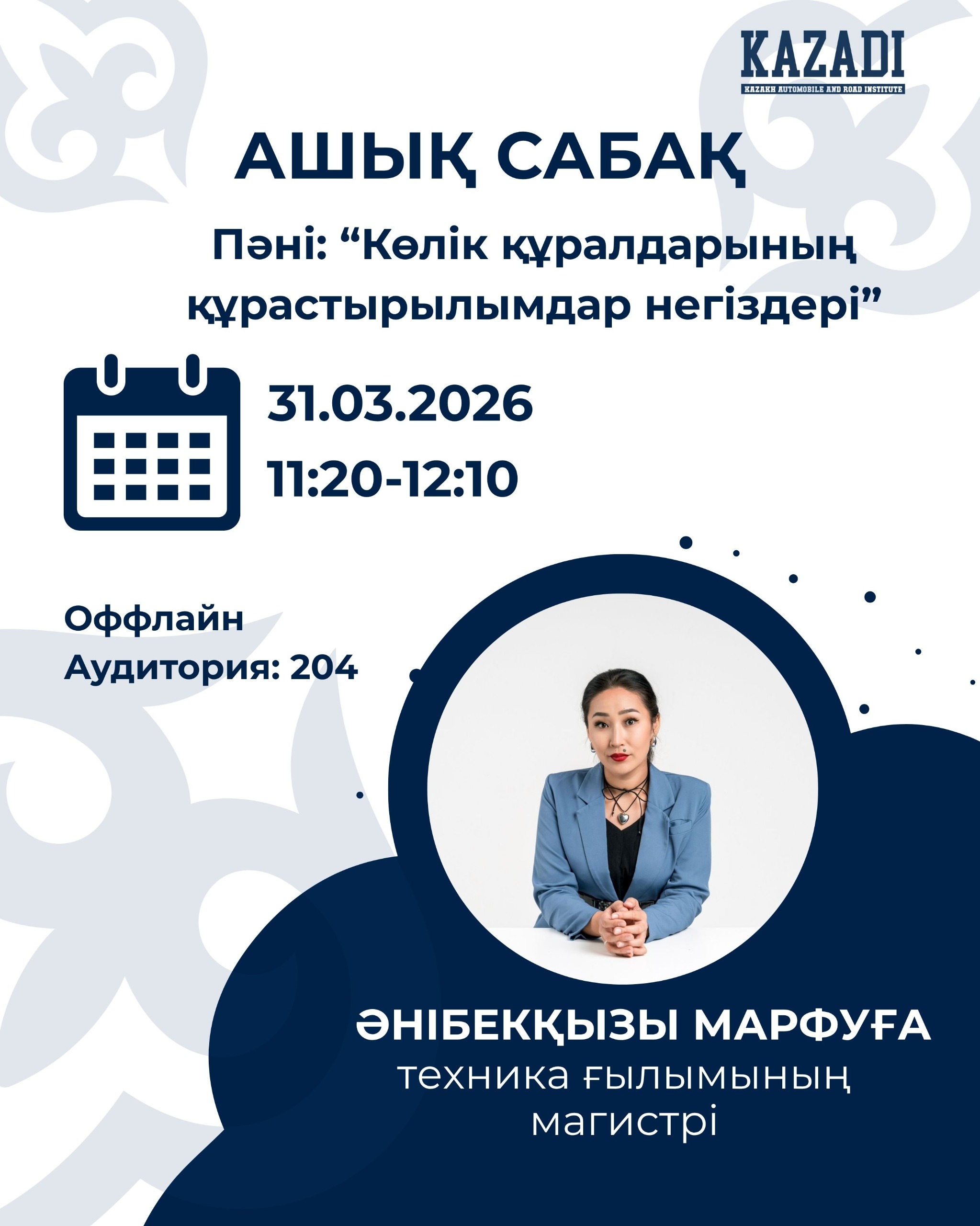 31.03 - Ашық сабақ Пәні: “Көлік құралдарының құрастырылымдар негіздері”