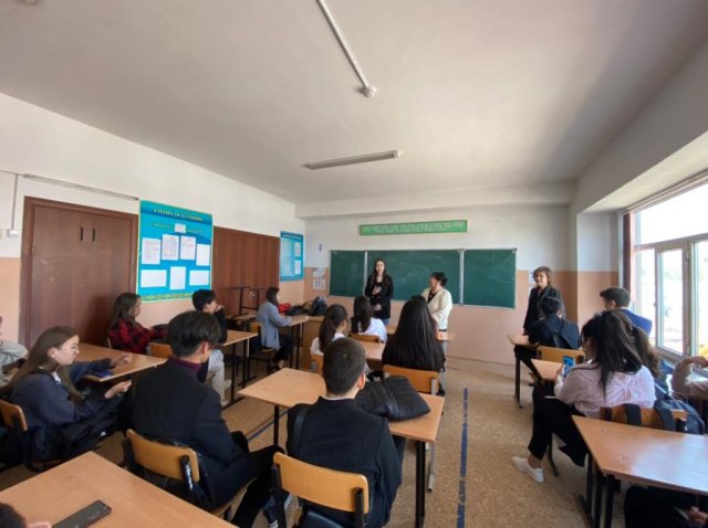 26 апреля 2022 года в школе им.Л.Н.Толстого, Алматинской области, Каскеленского района прошла встреча с выпускниками по профориентационной работе под руководством заместителя декана по воспитательной работе Казахского автомобильно — дорожного института им. Л. Б. Гончарова Баймагамбетовой Г. Е. и преподавателем кафедры «ОД и ИС» Оспановой А.А., студентки 1-курса Казиевой Лаурой и Тулепбаевой Самал.