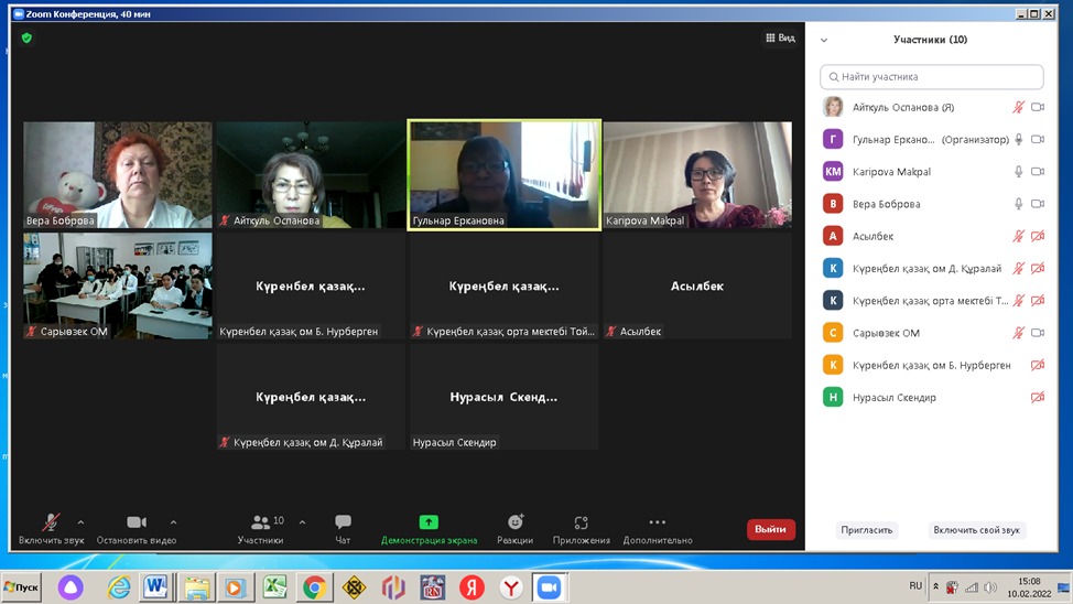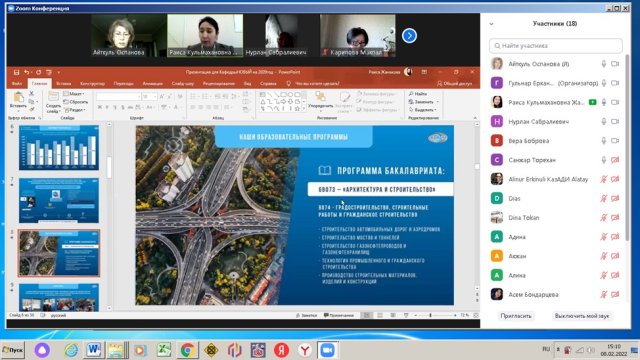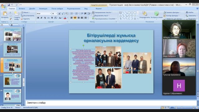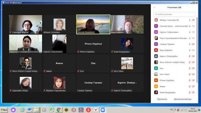 Также, в онлайн-встрече приняли участие преподаватели Карипова М. Р. и Боброва В. Н. из кафедры «Экономика». Оспанова А. А. из кафедры «ОД и ИС», Жанакова Р. К. из кафедры «ТС и ПСМ и К» и Сабралиев Н. С. из кафедры «ТТТ и Т и ОП».